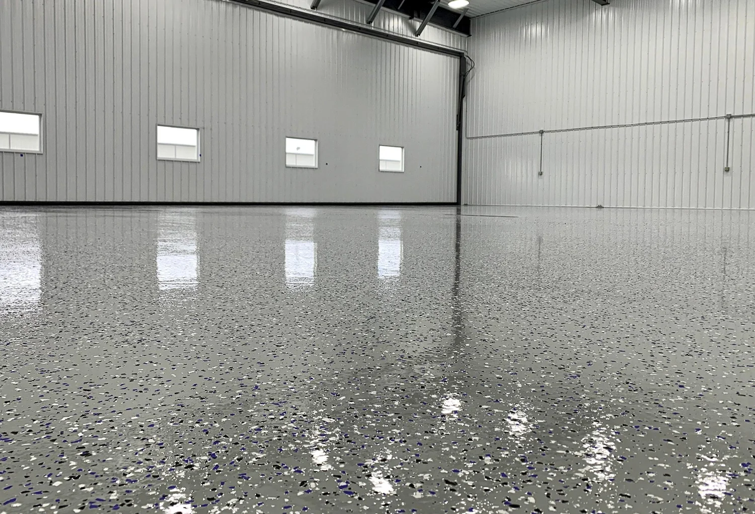 A seamless decorative epoxy floor designed for long-lasting durability and modern style — perfect for garages, basements, and living spaces.
